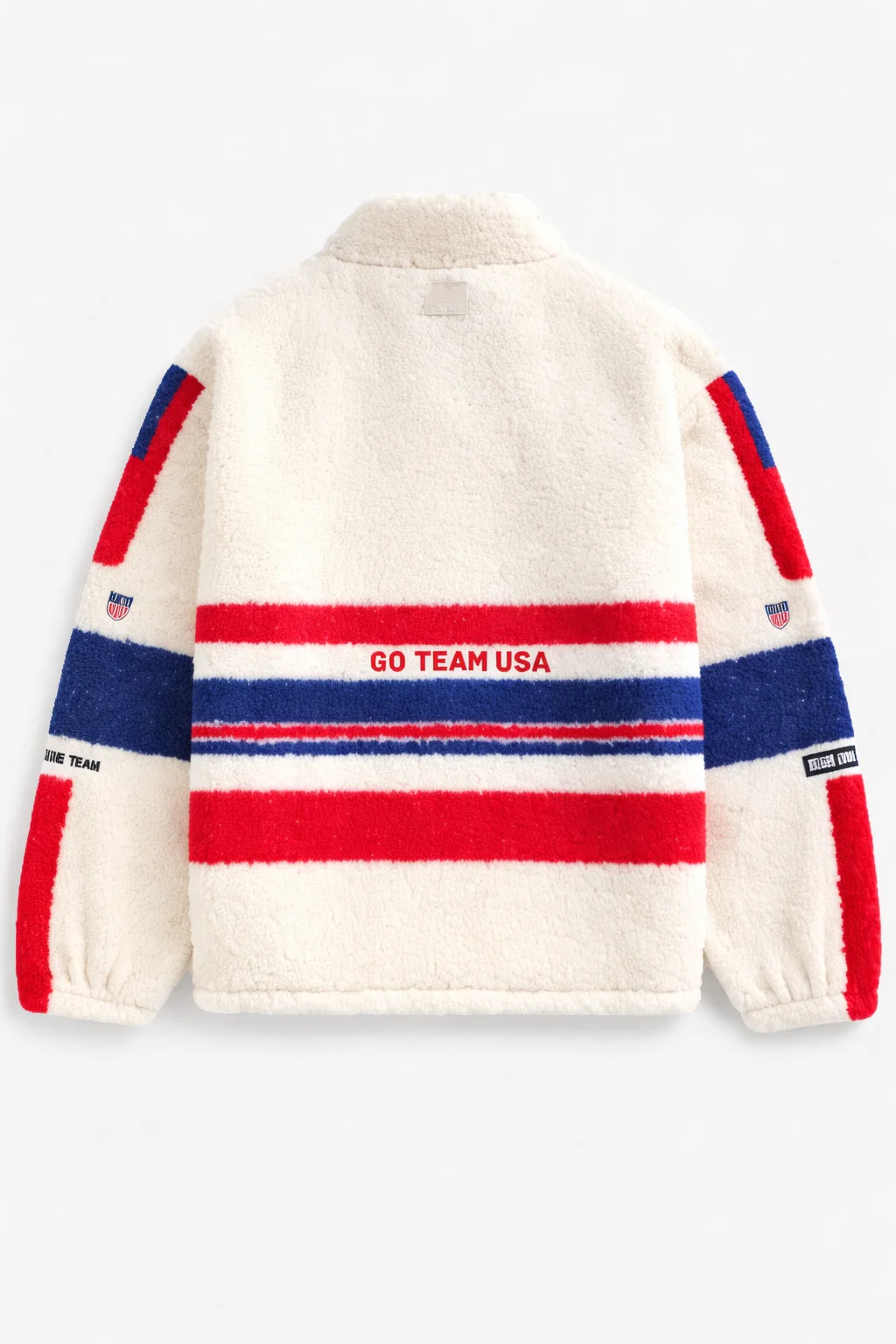 Winter Olympic 2026 Off Season x Team USA Cream Quarter-Zip Faux Sherling Jacket