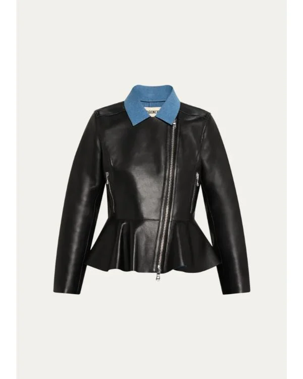 The View 2026 Ana Navarro Black Peplum Style Biker Leather Jacket