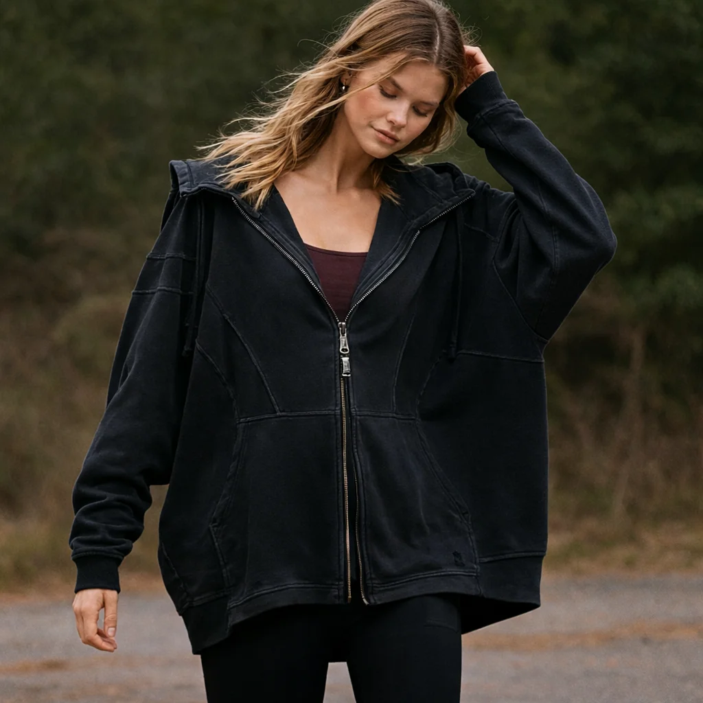 • Stylish hooded design with adjustable drawstrings