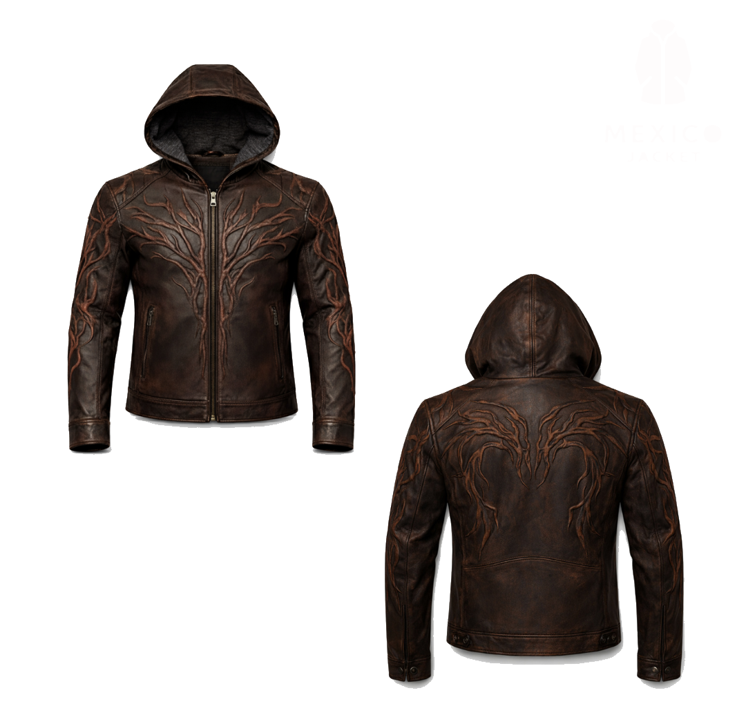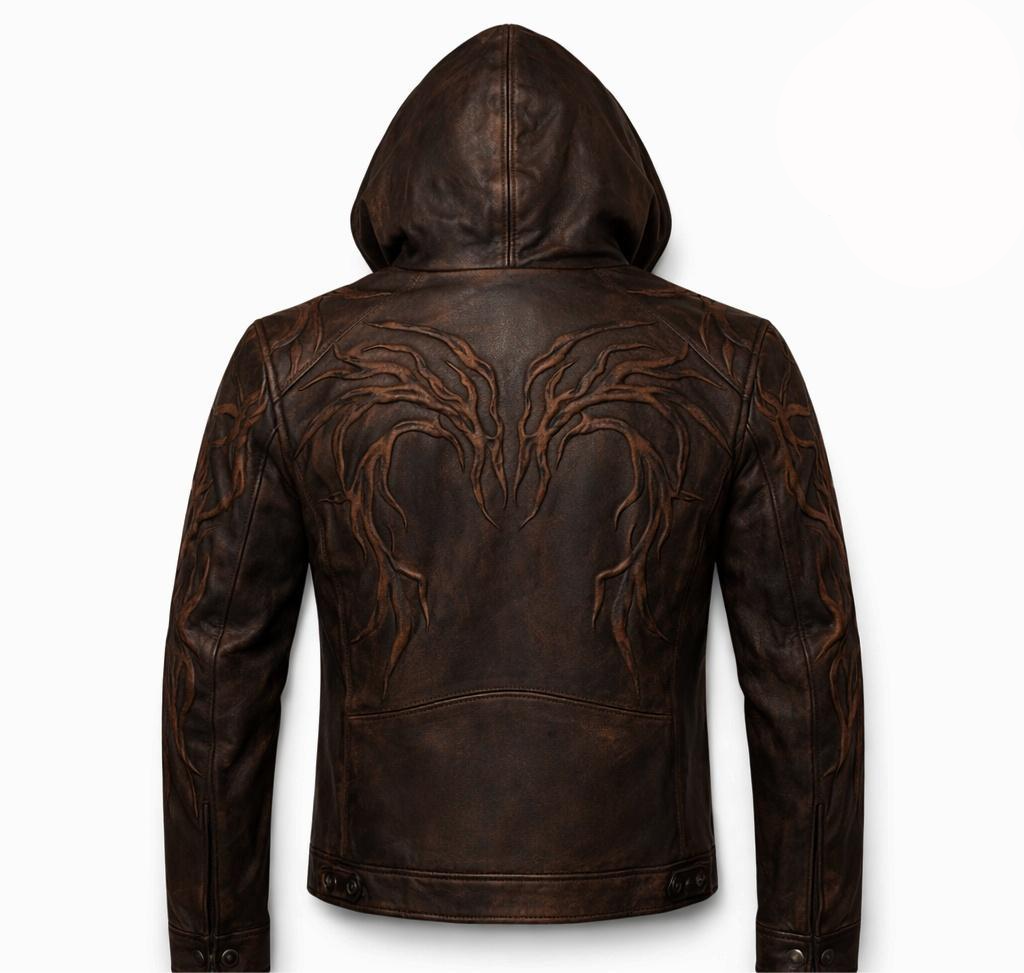 Step into the world of dark fantasy with this Vecna Inspired Leather Jacket with Hood, a striking horror cosplay piece designed for fans of supernatural villains and gothic aesthetics. Crafted from premium quality leather, this hooded jacket features intricate embossed vein like patterns that create a sinister, otherworldly look perfect for cosplay, Halloween, conventions or bold everyday fashion.